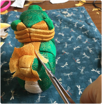 Als ich mich im Frühjahr 2022 mit frisch getroffener Entscheidung zum Puppenbau fragte, was genau ich lernen möchte, kam mir als erstes Japans Handwerks- und Puppenbaukunst in den Sinn, in ihrem in der Edo-Epoche (1603 bis 1868) aus Naturmaterialien ins Feinste ausgereiften Geschick. Im Oktober 2023 zog ich für 10 Monate nach Japan und recherchierte, lernte und experimentierte im Figurenhandwerk mit Naturmaterialien. Dabei wurde mir eine Begegnung im Figurenbau und -spiel zwischen Japan und Deutschland ein Anliegen: In der Zukunft meiner Arbeit werden sich die deutsche Handpuppe und die japanische Kimekomi-Puppe in meiner Neuschöpfung, der Kimekomi-Handpuppe, begegnen in einer japanischen Märchenaufführung, voraussichtlich "Momotarou".